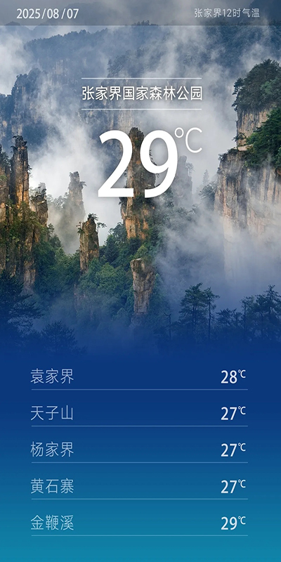 張家界景區(qū)今日天氣預(yù)報(bào)我市處于副高邊緣晴天間多云有陣雨或雷陣雨各大景區(qū)體感相對(duì)舒…