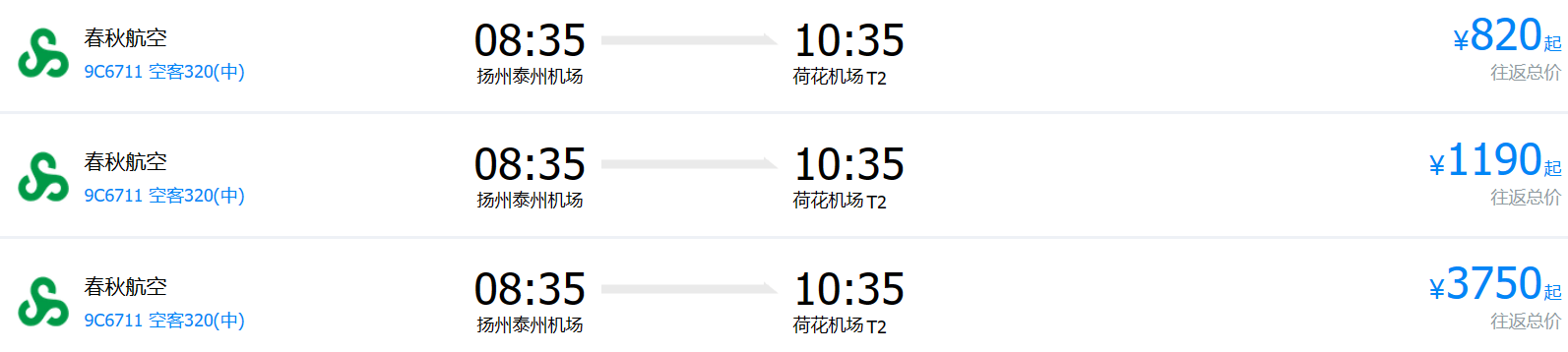 揚州泰州機(jī)場有直達(dá)張家界荷花機(jī)場的航班,具體航班參考: