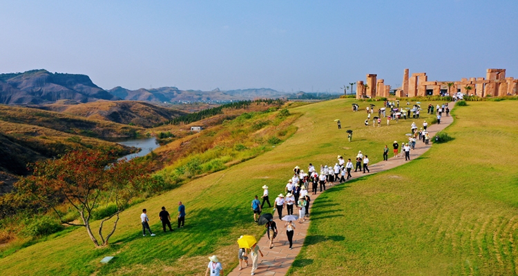 巨石陣由經(jīng)過切割的丹霞原石堆砌而成,門形石陣與水中嬌艷的荷花相互輝映,充滿了神秘而獨(dú)特的美感。在這里,建議穿著純色長(zhǎng)裙,穿梭于石拱門之間,利用光影的變幻營(yíng)造出神秘而迷人的氛圍,隨手一拍都是大片。夏季傍晚時(shí)分,這里還常有民俗表演,火把巡游的熱烈與丹霞夜景的靜謐相結(jié)合,氛圍感直接拉滿。