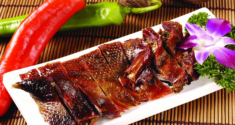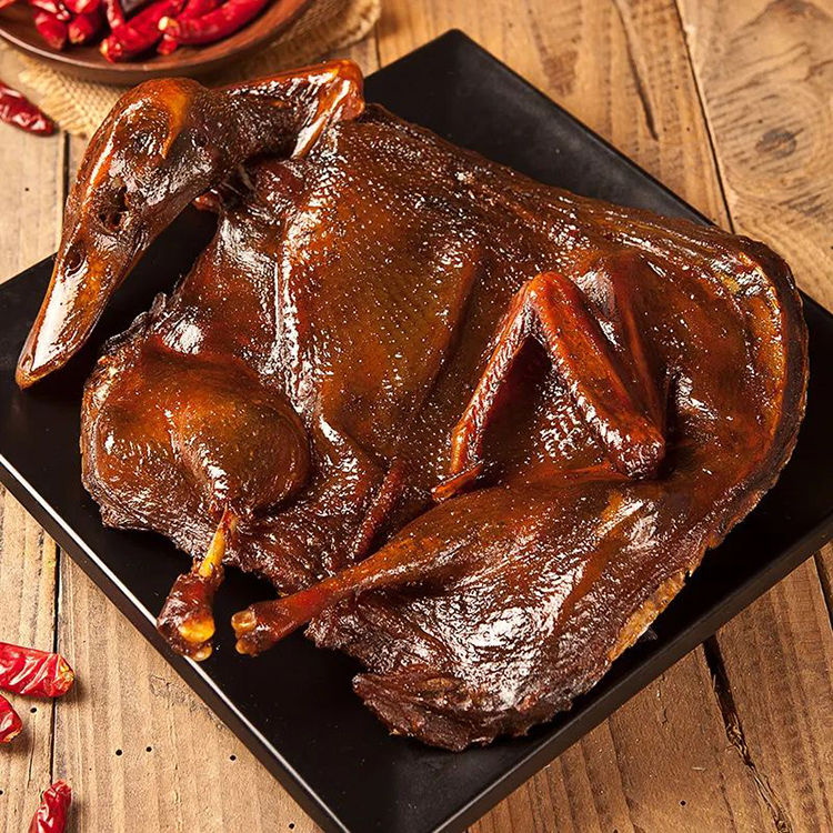 “常德醬板鴨”選用洞庭湖區(qū)蛋鴨為材料、經(jīng)三十多種名貴中藥浸泡,10余種香料、經(jīng)過(guò)風(fēng)干、烤制等15道工序精致而成,成品色澤深紅,皮肉酥香,醬香濃郁,滋味悠長(zhǎng),具有活血、順氣、健脾、養(yǎng)胃、美容之功效,是近期風(fēng)靡大江南北的一種風(fēng)味美食,是一道佐酒佳肴、送禮佳品。產(chǎn)品香、辣、甘、麻、咸、酥、綿適中,其中以辣稱(chēng)奇,具有醇香可口,色香俱全,低脂不膩,回味無(wú)窮,食用方便的特點(diǎn)。