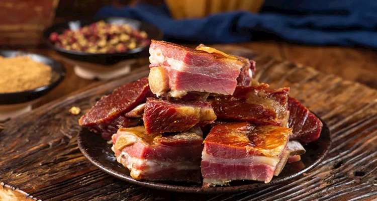 山區(qū)農(nóng)家自制,用松枝熏制,風味獨特。