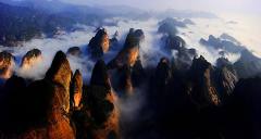 特別其中的“崀山六絕”更是堪稱世界奇觀:第一絕是天下第一巷,位于天一巷景區(qū),全長238.8米,兩側(cè)石壁高120—180余米,最寬處0.8米,最窄處0.33米,可謂世界一線天絕景;第二絕是八角寨鯨魚鬧海,位于八角寨景區(qū),俯視峽谷,浮云飄渺,奇峰異石,時而露出頭尾,恰似千萬條鯨魚在海中嬉戲;第三絕是將軍石,位于夫夷江景區(qū),海拔399.5米,石柱凈高75米,周長40米,沿夫夷江漂流而下,只見將軍石背負青天,下臨夫夷江,昂首挺胸,披星執(zhí)銳,虎虎聲威;第四絕是駱駝峰,位于辣椒峰景區(qū),峰高187.8米,長273米,有兩處凹陷,分成駱駝頭,駱駝背峰和駱駝尾,形象逼真,惟妙惟肖;第五絕是天生橋,橋墩長64米,寬14米,高20米,橋面厚度5米,全橋呈圓拱形,劃天而過,氣勢磅礴,被譽為亞洲第一橋;第六絕是辣椒峰,位于辣椒峰景區(qū),高達180米,頭大腳小,恰似一只碩大無比的辣椒。