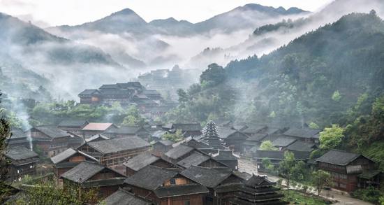 芋頭古侗寨民居以“桿欄式”吊腳樓為主,沿山、沿谷因地就勢(shì)布局,形成獨(dú)特的“山脊型”與“山谷型”布局模式,又和外界環(huán)境巧妙融于一體,構(gòu)成侗寨特殊風(fēng)格,保留了大量清代中期以前的建筑物。